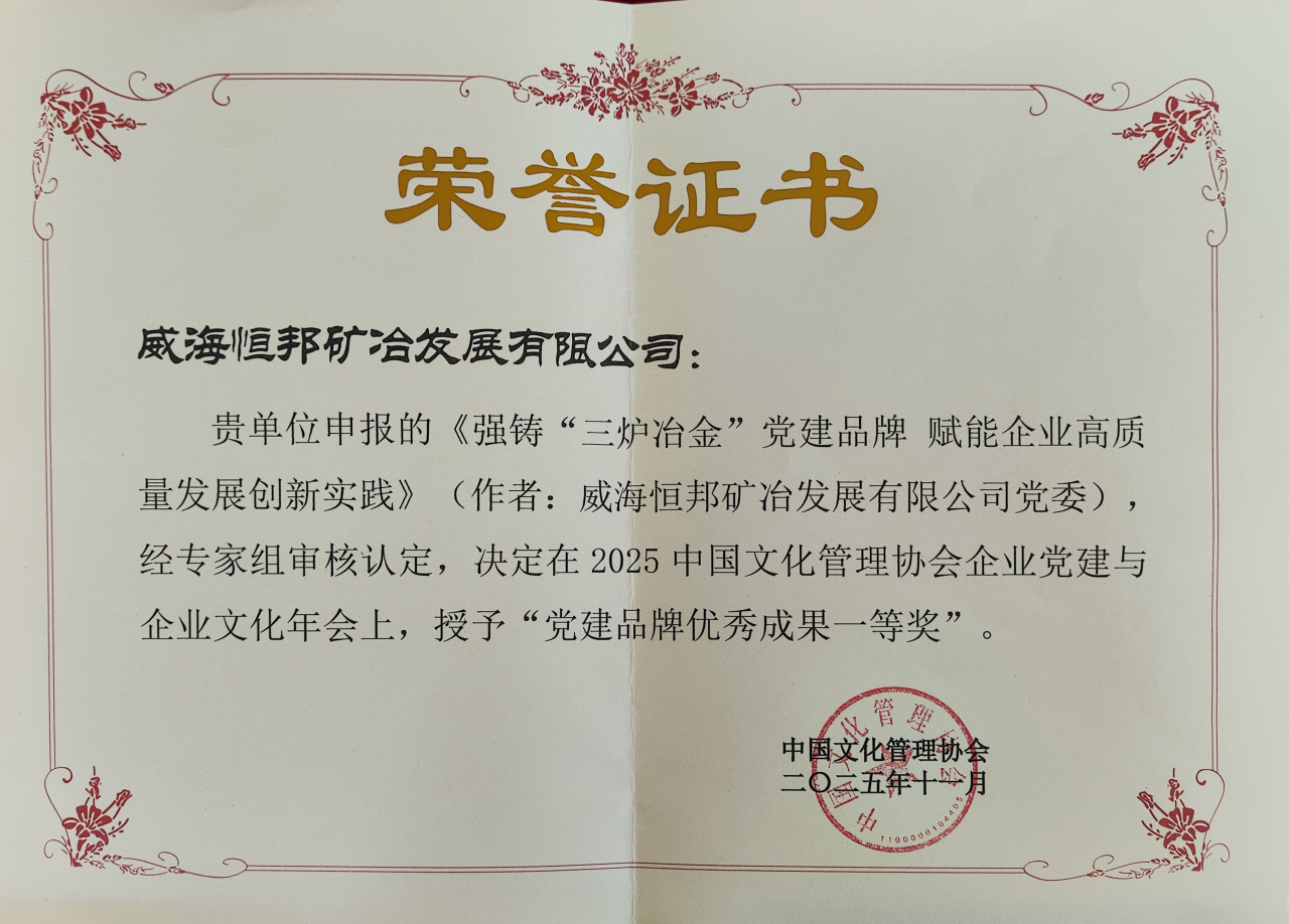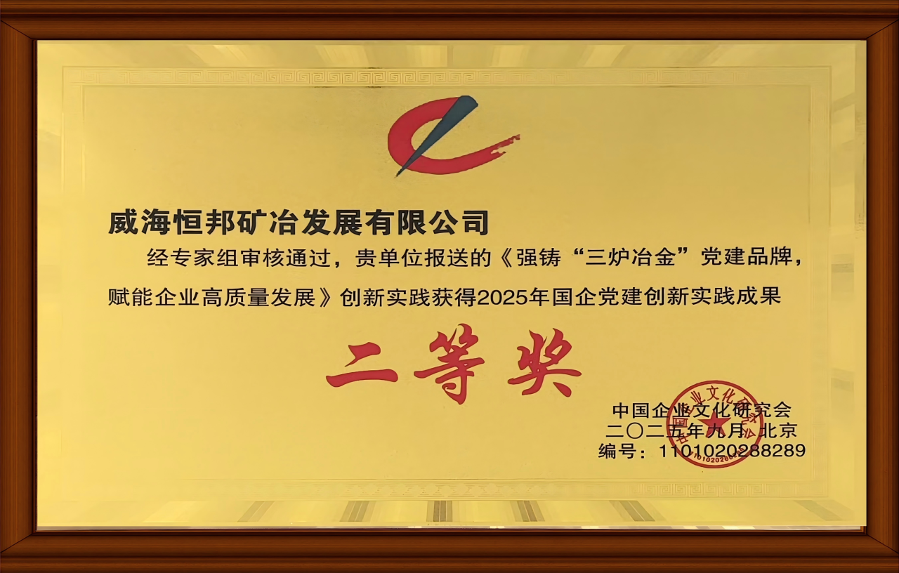 据悉,威海恒邦《强铸“三炉冶金”党建品牌,赋能企业高质量发展创新实践》在2025年9月份被中国企业文化研究会授予“2025年国企党建创新实践技术成果二等奖。”